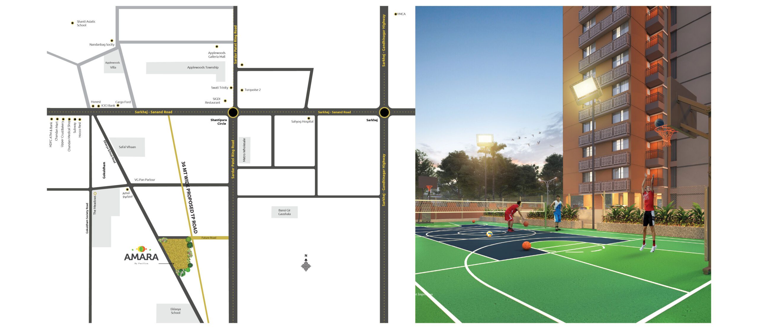 Located near Gokuldham off Sanand Highway in Ahmedabad, Amara prides itself on being a place where a few lucky families will get to start a new life with more amenities and thoughtfully designed spaces than they could have ever wanted.