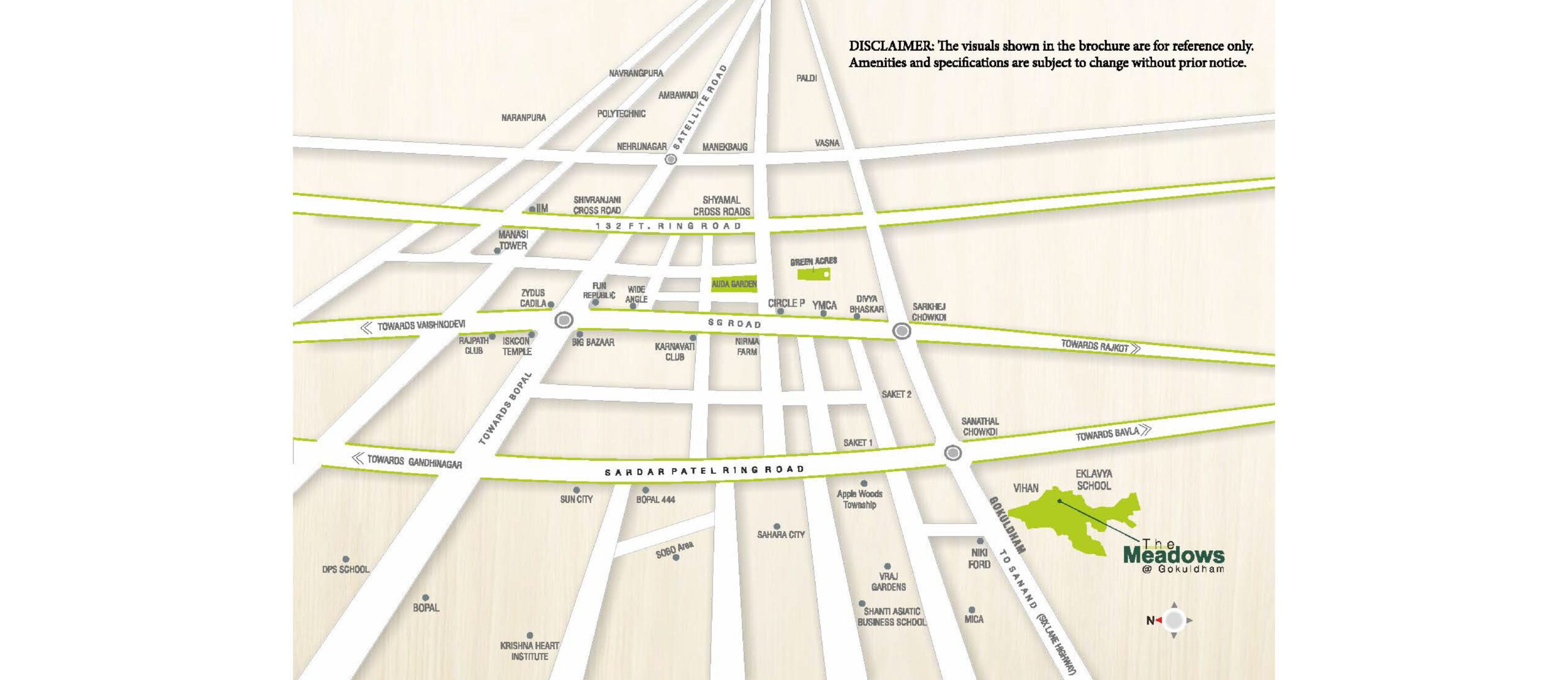 The Meadows @ Gokuldham provides its residents with splendid Villas in Ahmedabad that blend the needs, emotions, cultures and values under one canopy. With spacious and luxurious 3/4 BHK villas, the project features a countryside ambience thus providing a perfect mix of lavishness and leisure. Located at Sanathal-Sanand Cross Roads, the residential project is highly accessible from the strategic lanes of the city. The Meadows is a collection of Villas close to Sardar Patel Rng Road and SG Highway. It is well connected to educational institutes, entertainment hubs, and healthcare centres.